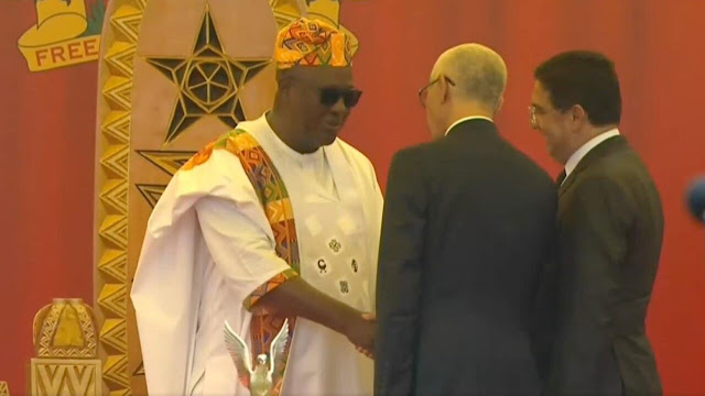 ويضم الوفد المغريي ناصر بوريطة وزير الشؤون الخارجية والتعاون الإفريقي والمغاربة المقيمين بالخارج، والسيدة إيمان واعديل سفيرة صاحب الجلالة بجمهورية غانا.