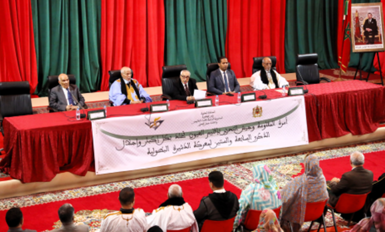 وأشار الى المظاهرات الحاشدة والانتفاضات العارمة التي عمت الحواضر والبوادي، وكانت مواقف أبناء الصحراء المغربية، وهي يومئذ تحت نير الاحتلال الاسباني، مشهوداً بها وثابتة وفي أوج الوطنية الصادقة والحقة والوفاء للمقدسات ولروابط البيعة والتمسك بالانتماء للوطن، فبادروا بالانخراط بكل حماس في صفوف منظمات المقاومة، مساهمين بكل فعالية ونجاعة في معارك التحرير التي تكللت بالنصر المبين والعودة المظفرة لجلالة المغفور له محمد الخامس إلى أرض الوطن حاملا مشعل الحرية والاستقلال.